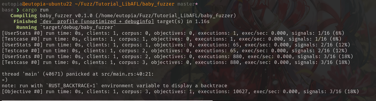 首先,新建一个 Rust 项目,添加 LibAFL 作为依赖: