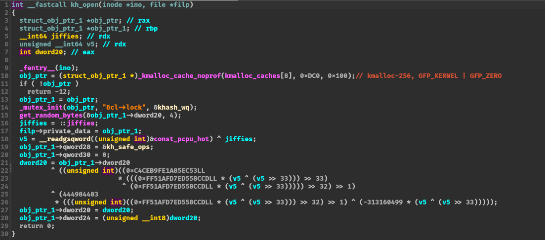 dev_fd = open(DEV_PATH, O_RDWR); if (dev_fd > 0) log_info("open /dev/khash success!");